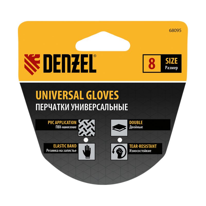 Перчатки универсальные, двойные, ПВХ нанесение, размер 8 Denzel, 68095