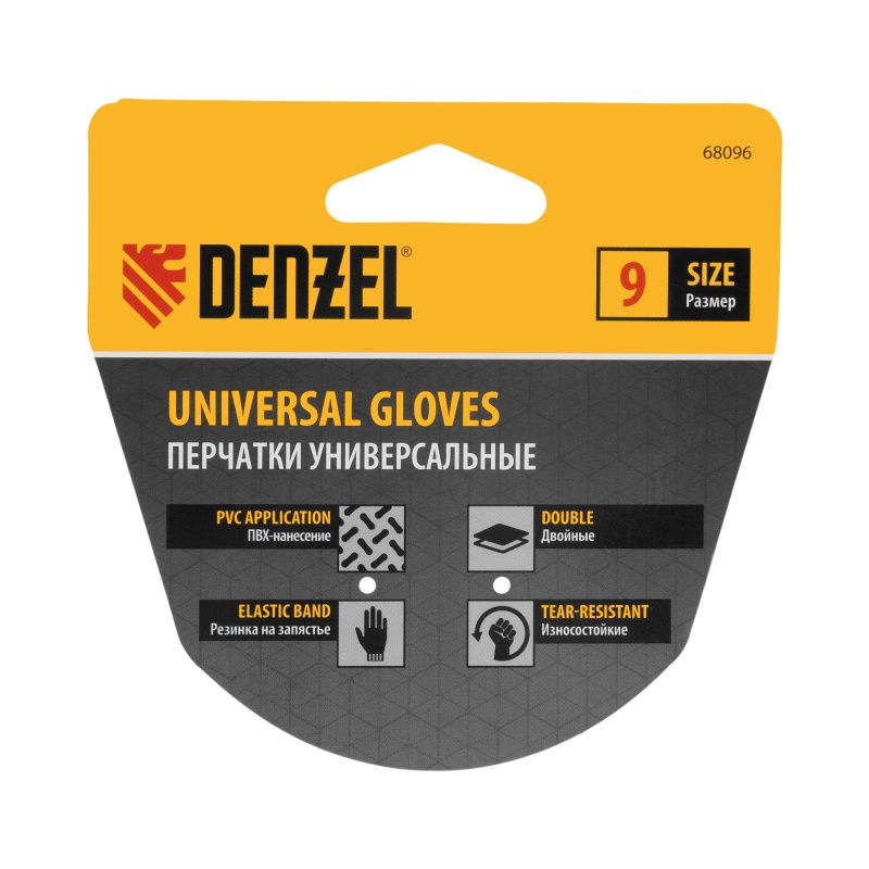 Перчатки универсальные, двойные, ПВХ нанесение, размер 9 Denzel, 68096