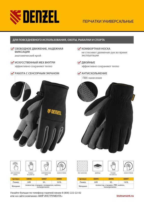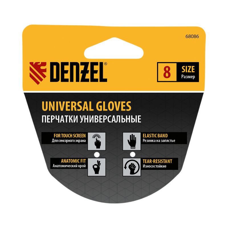 Перчатки универсальные, искусственный мех, работа с сенсорным экраном, размер 8 Denzel, 68086