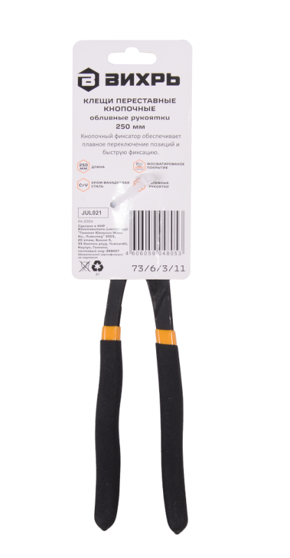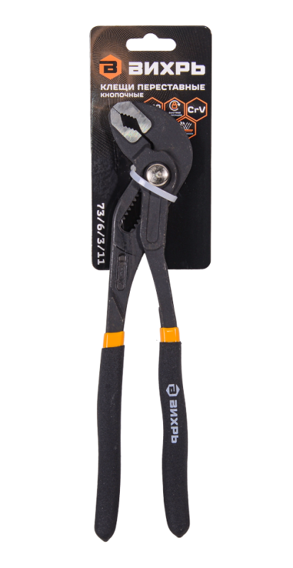 Клещи переставные,250 мм., кнопочные, обливные рукоятки Вихрь, 73/6/3/11