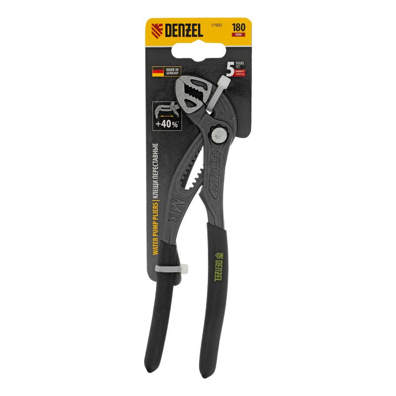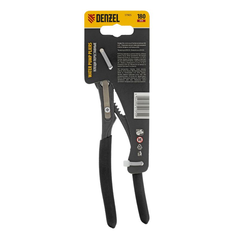 Клещи переставные, кнопочный механизм, обливные рукоятки, 180 мм Denzel, 17905