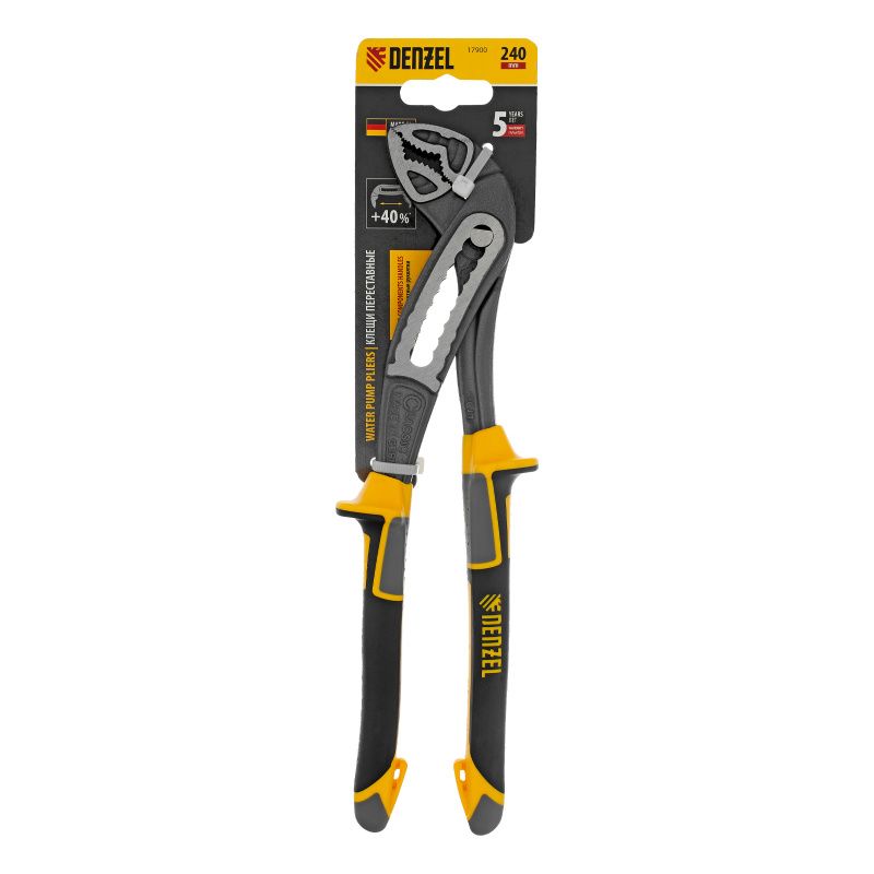 Клещи переставные, трехкомпонентные рукоятки 240 мм Denzel, 17900