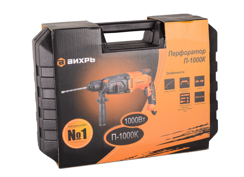 Перфоратор ВИХРЬ – электроинструмент, аналогичный дрели, но с наличием не механического, а пневматического ударного механизма. Именно поэтому перфоратор используют для сложных работ по твёрдым материалам - бетону, кирпичу, металлам.Комплект поставки: Перфоратор 1 шт. Ограничитель глубины сверления 1 шт. Боковая рукоятка 1шт.Паспорт (инструкция) 1 шт. Упаковка 1 шт. Кейс пластмассовый 1 шт. Дополнительно в комплект поставки машины могут быть включены: Бур 1 шт. Долото 1 шт. Смазка для ударного механизма (для моделей П-1200К-М, П-1400К-В). Ключ для пластиковой заглушки 1 шт.