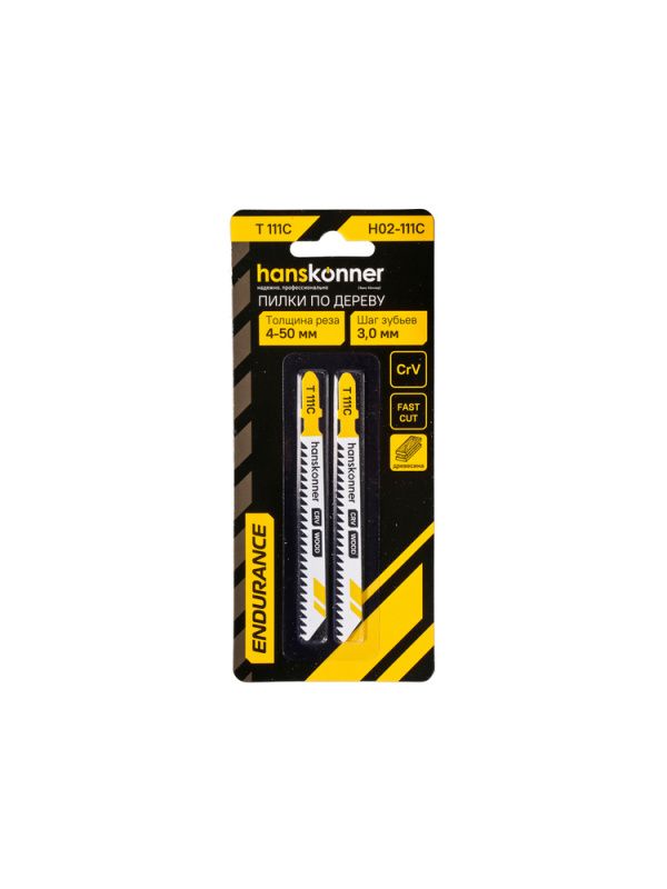 Пилки для лобзика по дереву 2шт, T111C (мяг,тверд 5-50мм) Hanskonner, H02-111C