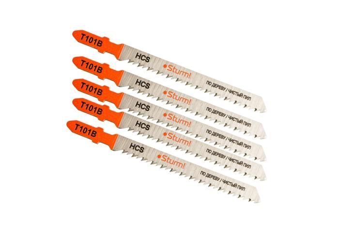 Пилки для лобзика по дереву T101B, 5 шт, 100х75мм, шаг зуба 2,5мм, чистый прямой рез, HCS, Sturm, 5250309
