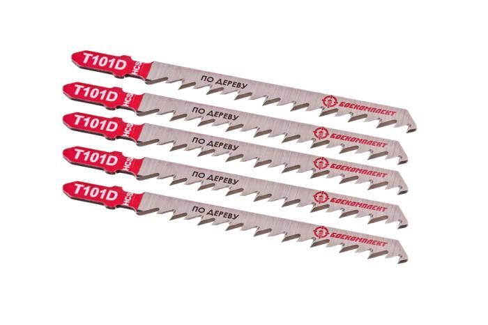 Пилки для лобзика по дереву T101D, 5 шт, 100х74мм, шаг зуба 4мм, чистый прямой рез, HCS, БОЕКОМПЛЕКТ