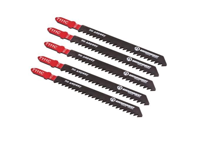 Пилки для лобзика по дереву T111C, 5 шт, 100х74мм, шаг зуба 3мм, быстрый прямой рез, HCS, БОЕКОМПЛЕКТ