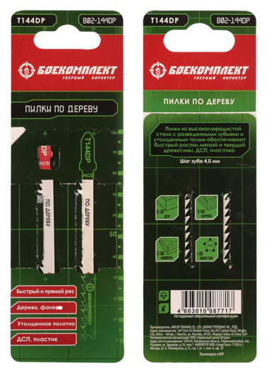 | Длина лезвий, мм | Пилки для лобзика по дереву T144DP, 2 шт, 100х74мм, шаг зуба 4мм, быстрый прямой рез, HCS, БОЕКОМПЛЕКТ |