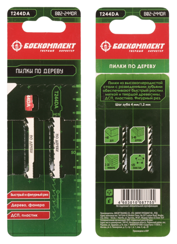 | Длина лезвий, мм | Пилки для лобзика по дереву T244DA, 2 шт, 100х74мм, шаг зуба 4мм, быстрый фигурный рез, HCS, БОЕКОМПЛЕКТ |
