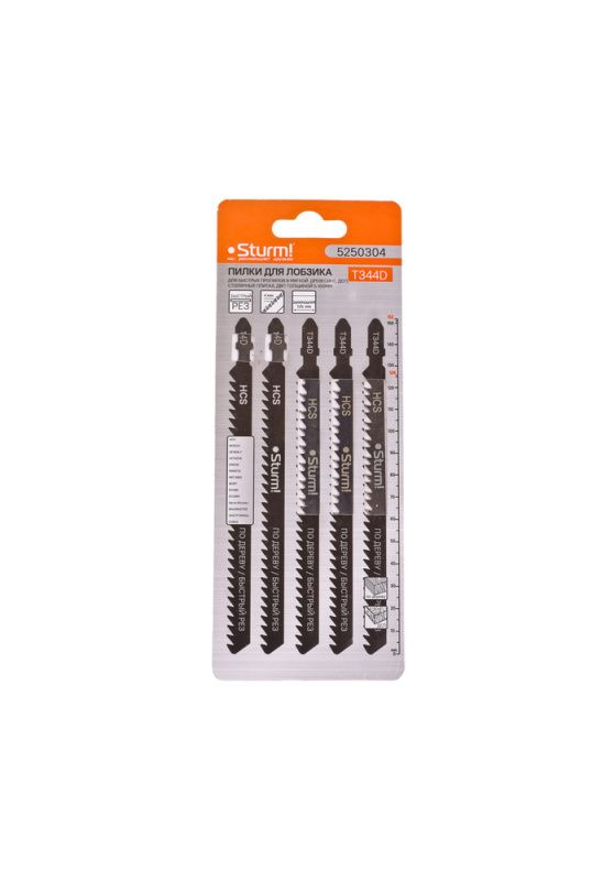 Пилки для лобзика по дереву T344D, 5 шт, T344D, 152х126мм, шаг зуба 4мм, быстрый рез, HCS, Sturm, 5250304