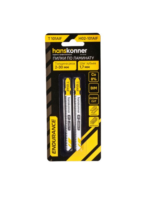 Пилки для лобзика по ламинату 2шт, T101AIF (дер 3-20мм, пласт<30мм) Hanskonner, H02-101AIF