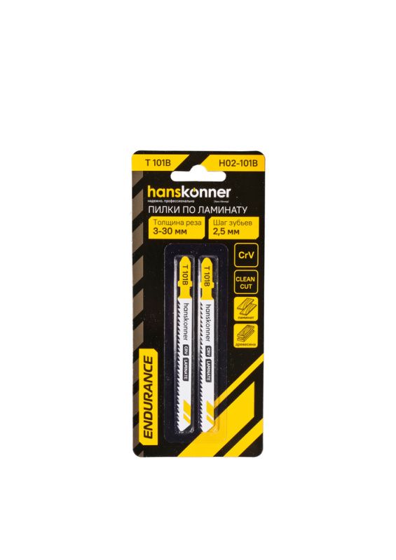 Пилки для лобзика по ламинату 2шт, T101B (дер,ДСП,фанера 3-30мм) Hanskonner, H02-101B