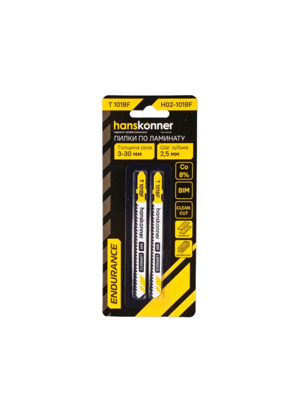 Пилки для лобзика по ламинату 2шт, T101BF (дер,пласт.,фибер.3-30мм) Hanskonner, H02-101BF