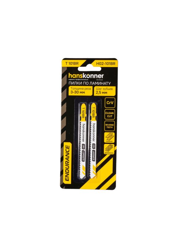 Пилки для лобзика по ламинату 2шт, T101BR (дер,ДСП,фанера 3-30мм) Hanskonner, H02-101BR