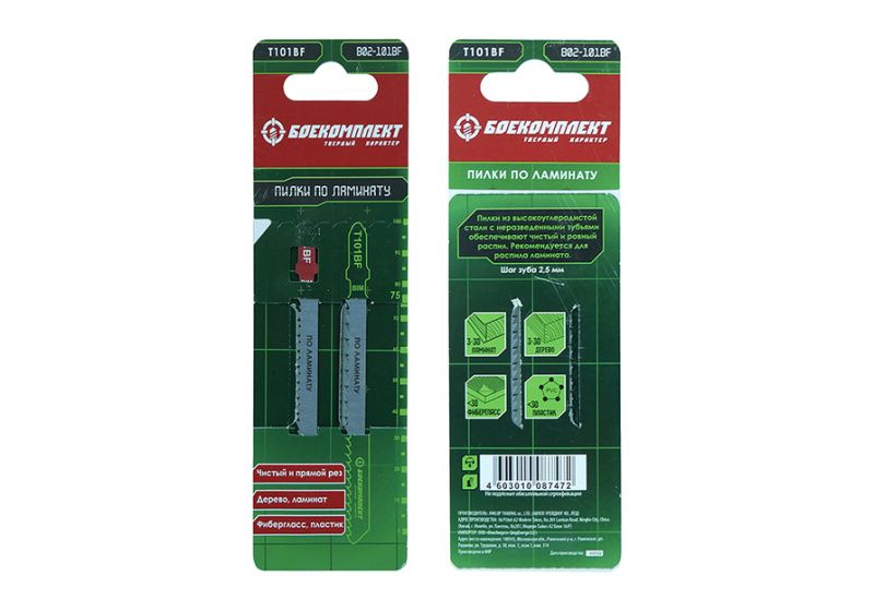 Пилки для лобзика по ламинату T101BF, 2 шт, 100х74мм, шаг зуба 2,5мм, чистый прямой рез, BIM, БОЕКОМПЛЕКТ, B02-101BF