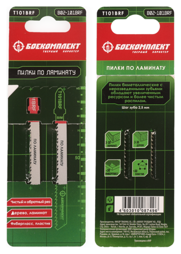 Пилки для лобзика по ламинату T101BRF, 2 шт, 100х74мм, шаг резьбы 2,5мм, чистый обратный рез, BIM, БОЕКОМПЛЕКТ, B02-101BRF