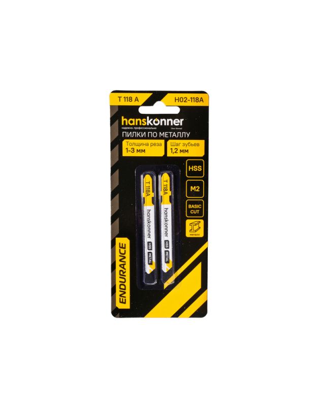 Пилки для лобзика по мет. 2шт тонк.прям.рез (лист 1-3мм,проф.10-30мм) Hanskonner, H02-118A