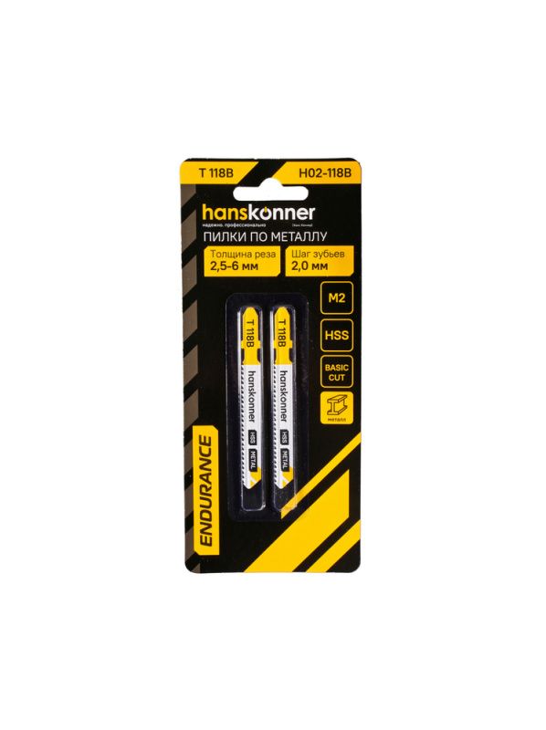 Пилки для лобзика по металлу 2шт, T118B (лист 3-5мм, проф.10-30мм) Hanskonner, H02-118B