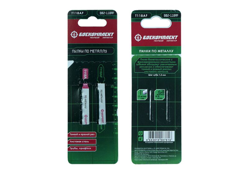 Пилки для лобзика по металлу T118AF, 2 шт, 76х50мм, шаг зуба 1,2мм, тонкий прямой рез, BIM, БОЕКОМПЛЕКТ, B02-118AF