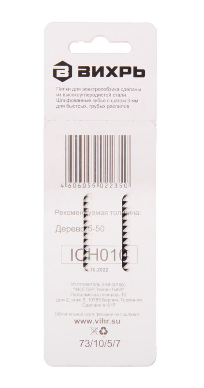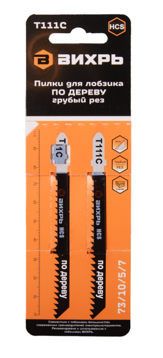 Пилки для лобзика ВИХРЬ Т111C по дереву, грубый рез, 73/10/5/7