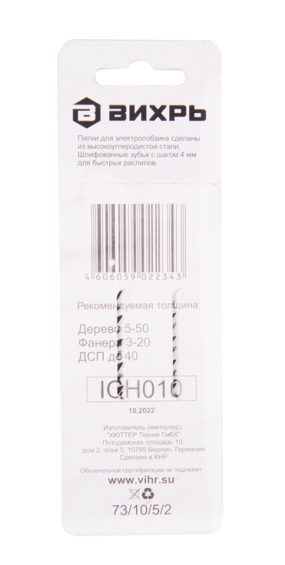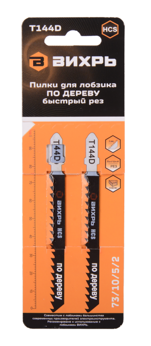 Пилки для лобзика ВИХРЬ Т144D по дереву, быстрый рез, 73/10/5/2