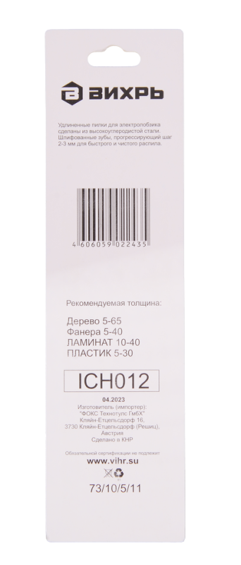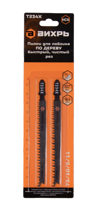 Пилки для лобзика ВИХРЬ Т234Х по дереву, быстрый, чистый рез, 73/10/5/11
