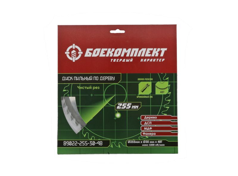 Пильный диск по дереву 255x30мм, 48 зубьев, БОЕКОМПЛЕКТ, B9022-255-30-48
