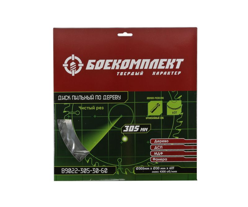 Пильный диск по дереву 305x30мм, 60 зубьев, БОЕКОМПЛЕКТ, B9022-305-30-60
