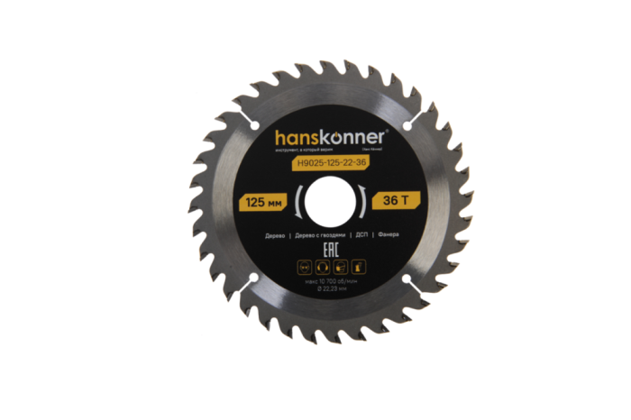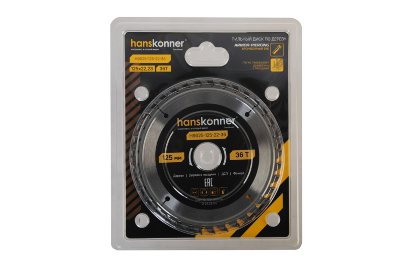 Пильный диск по дереву ArmorPiercing 125x22мм, 36 зубьев, Hanskonner, H9025-125-22-36