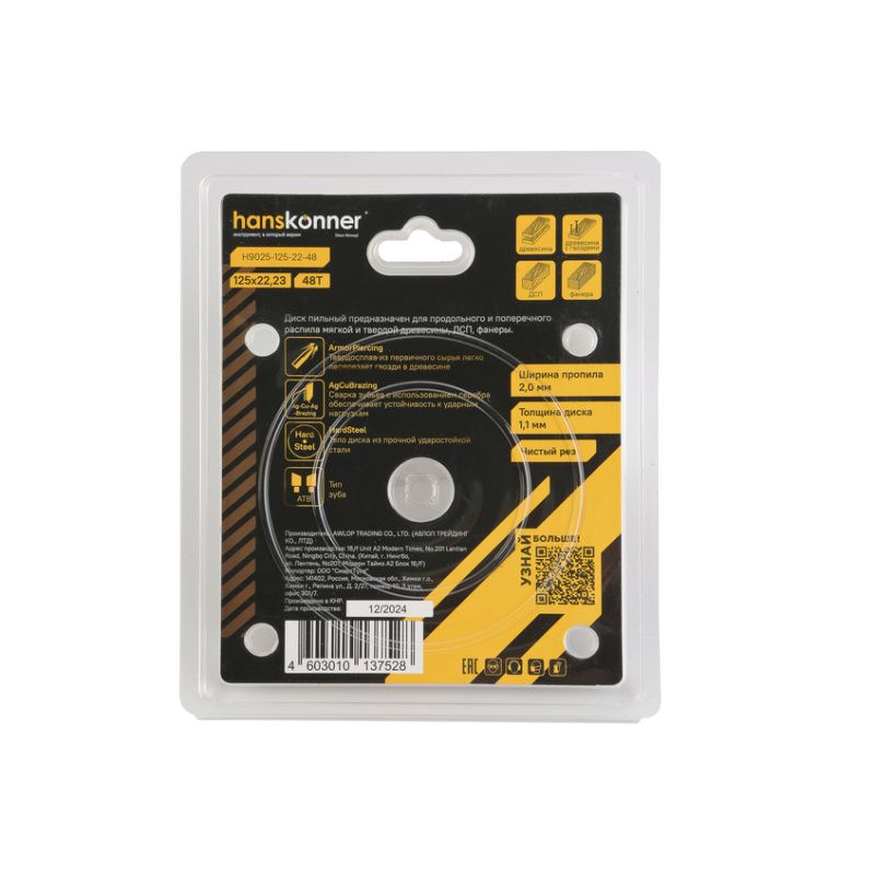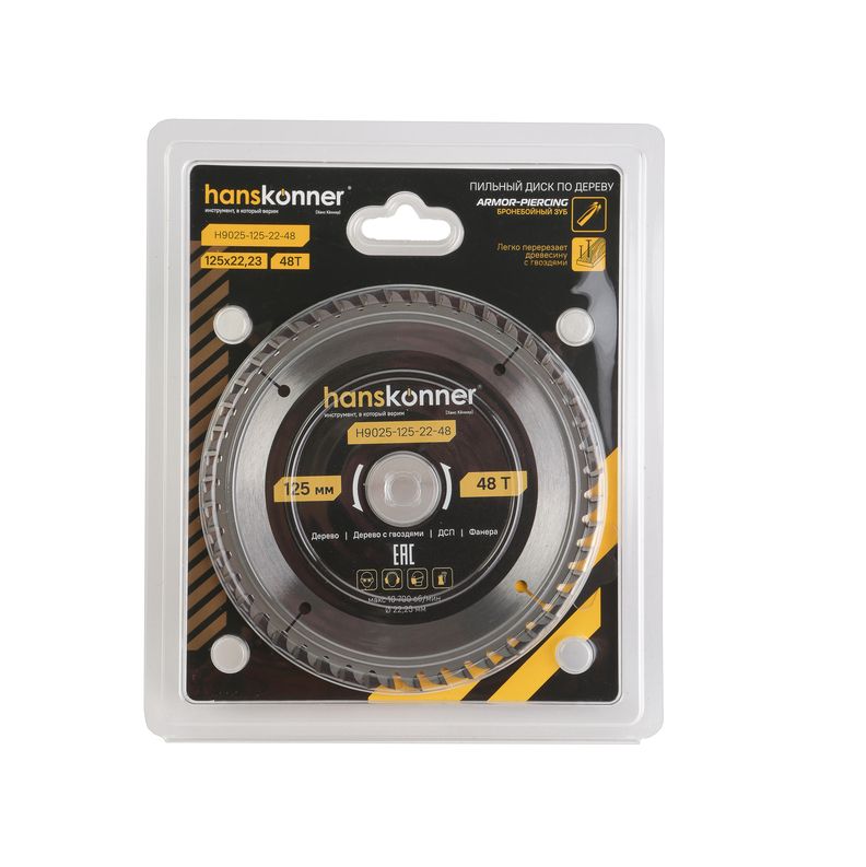 Пильный диск по дереву ArmorPiercing 125x22мм, 48 зубьев, Hanskonner, H9025-125-22-48
