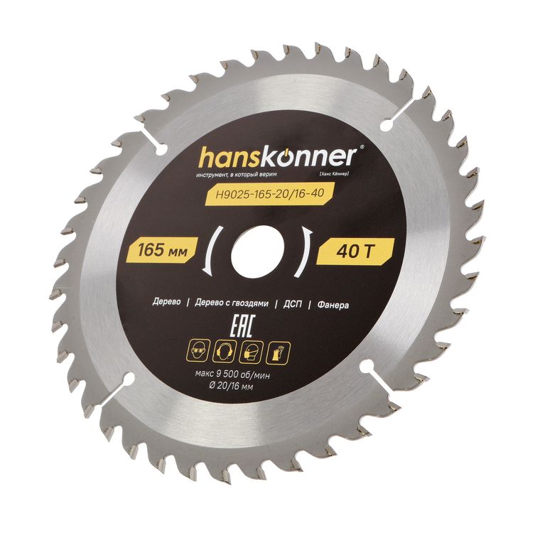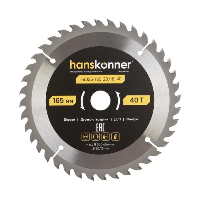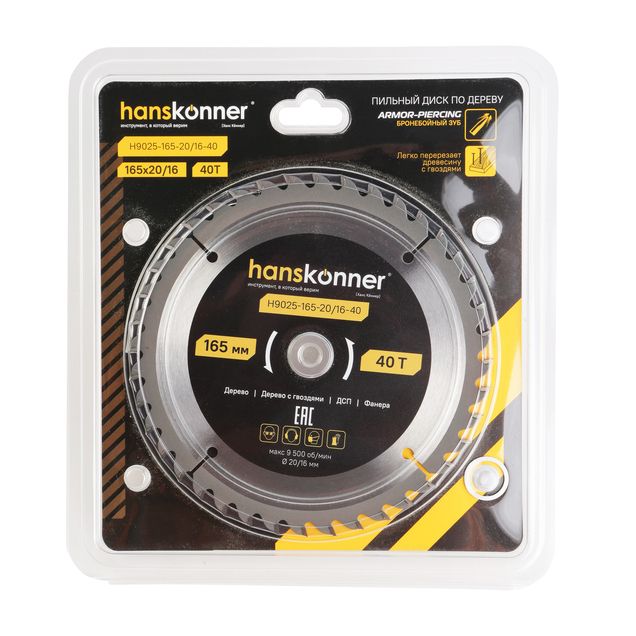 Пильный диск по дереву ArmorPiercing 165x20/16мм, 40 зубьев, Hanskonner, H9025-165-20/16-40