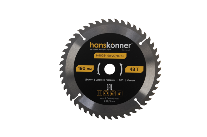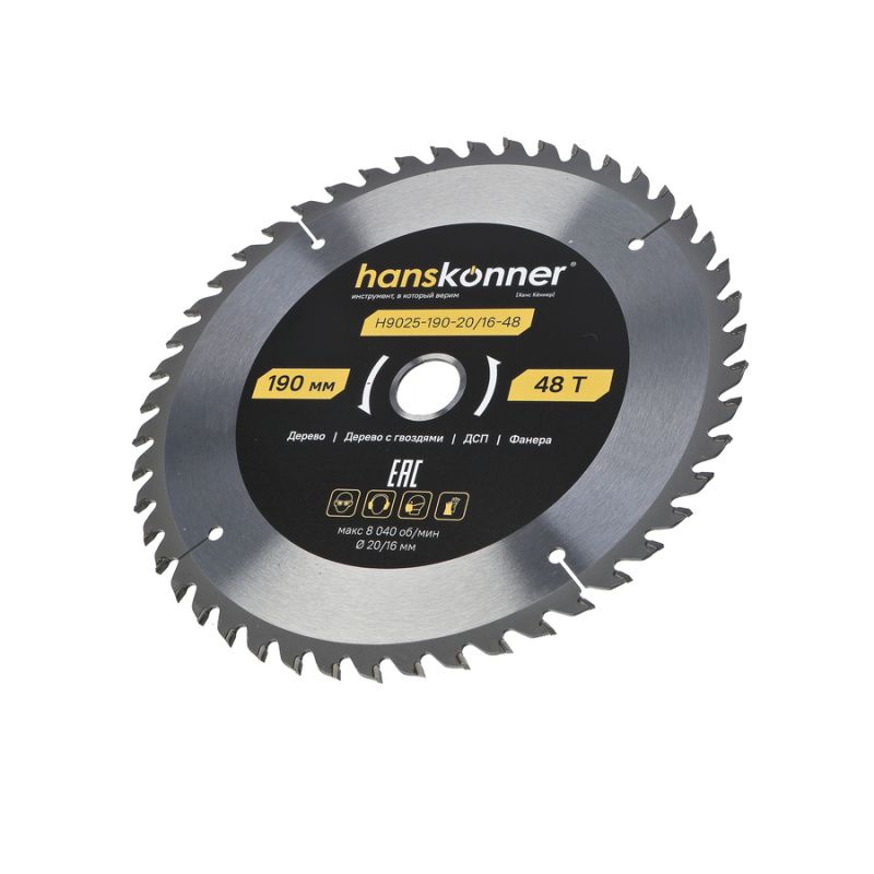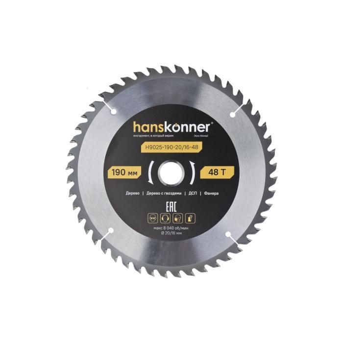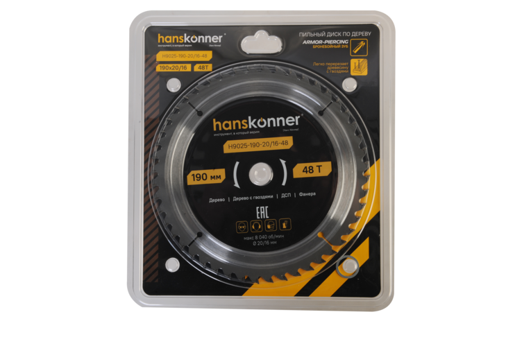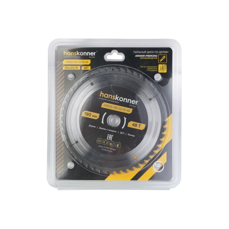Пильный диск по дереву ArmorPiercing 190x20/16мм, 48 зубьев, Hanskonner, H9025-190-20/16-48