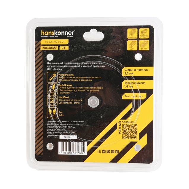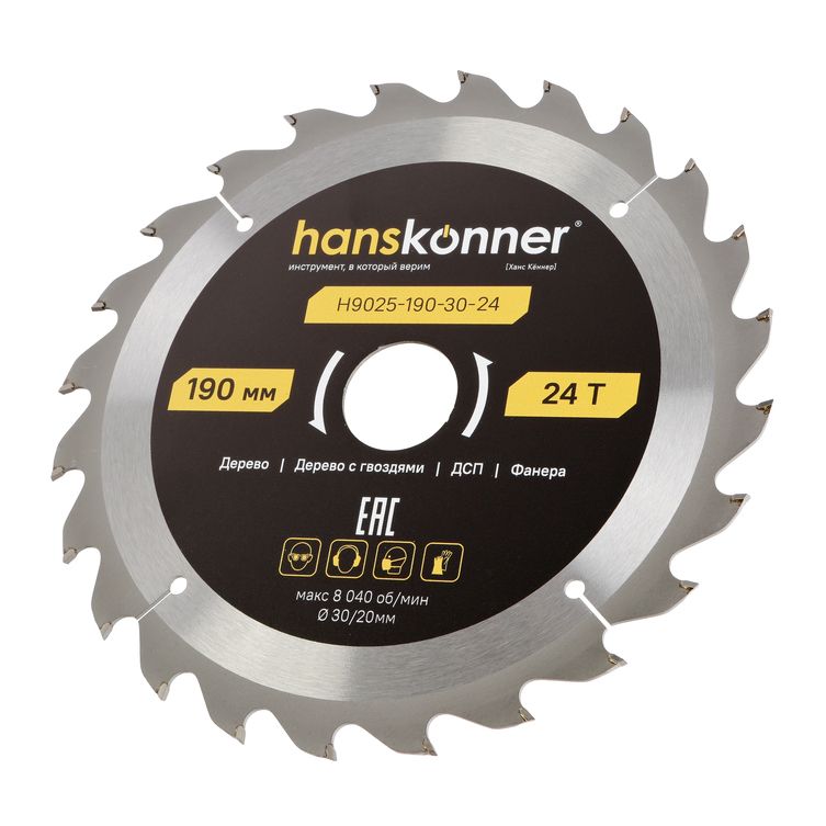 Пильный диск по дереву ArmorPiercing 190x30/20мм, 24 зуба, Hanskonner, H9025-190-30-24
