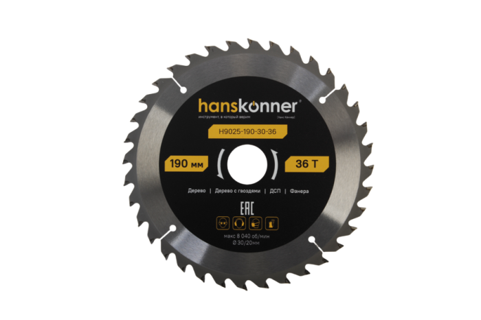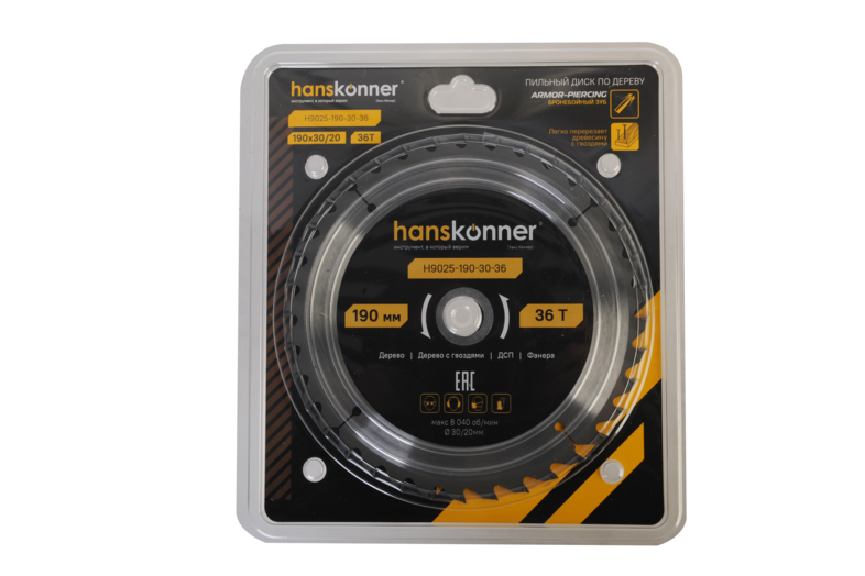 Пильный диск по дереву ArmorPiercing 190x30/20мм, 36 зубьев, Hanskonner, H9025-190-30-36