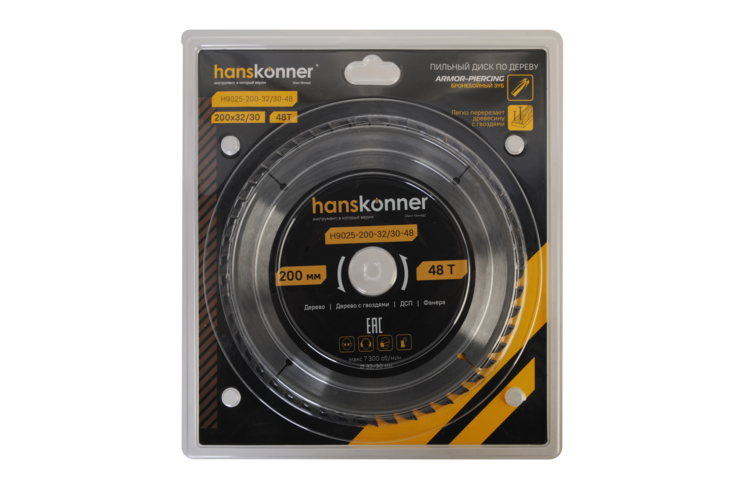 Пильный диск по дереву ArmorPiercing 200x32/30мм, 48 зубьев, Hanskonner, H9025-200-32/30-48