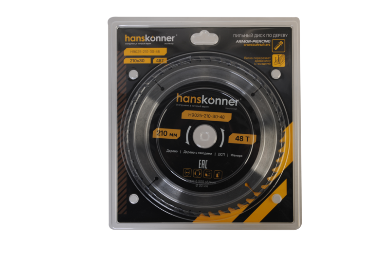 Пильный диск по дереву ArmorPiercing 210x30мм, 48 зубьев, Hanskonner, H9025-210-30-48