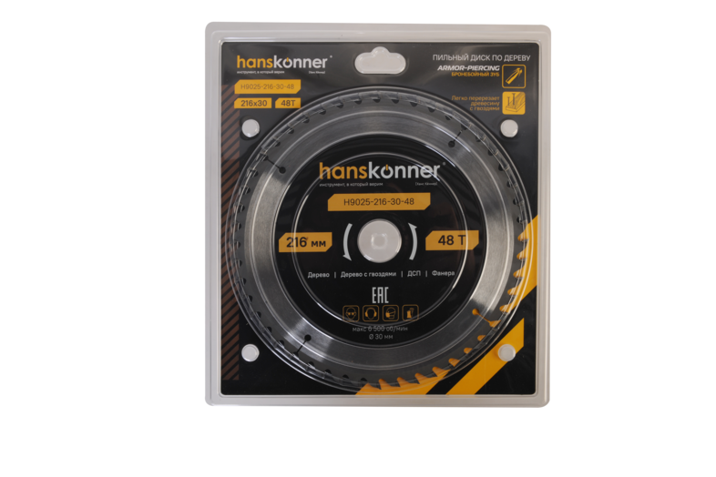 Пильный диск по дереву ArmorPiercing 216x32/30мм, 48 зубьев, Hanskonner, H9025-216-30-48