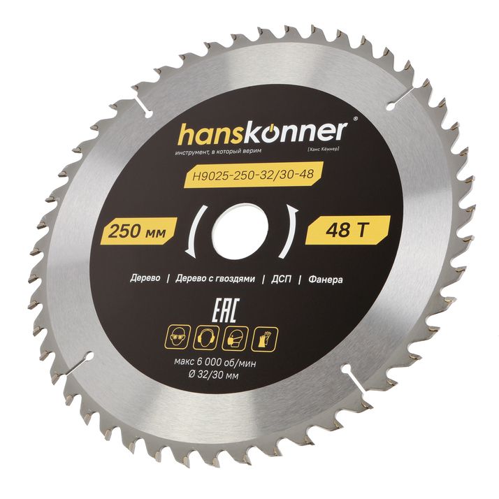 Пильный диск по дереву ArmorPiercing 250x32/30мм, 48 зубьев, Hanskonner, H9025-250-32/30-48