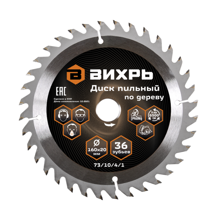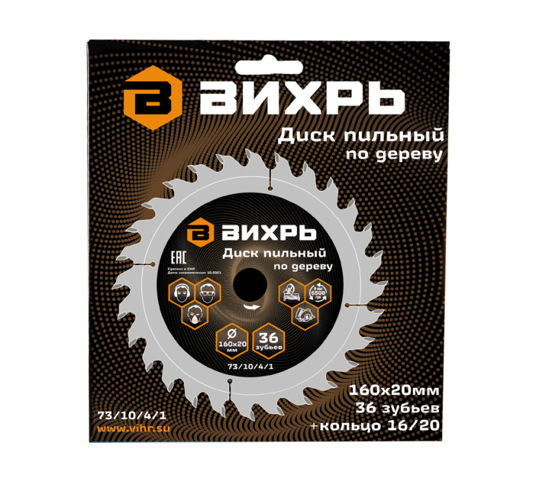 Диск пильный по дереву ВИХРЬ 160х20мм, 36 зубьев, 73/10/4/1