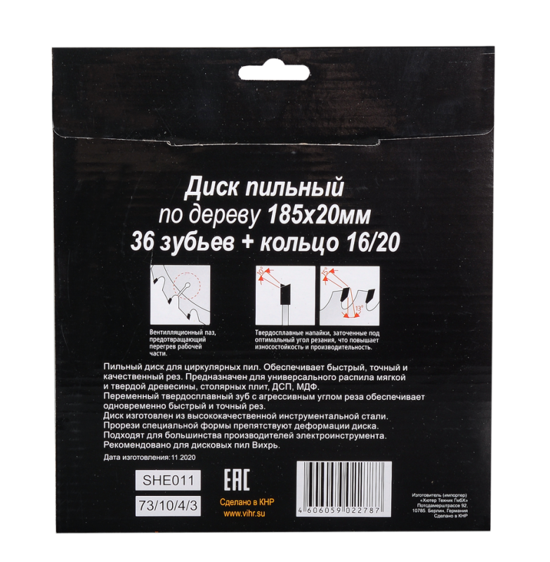 | Модель | Диск пильный по дереву 185х20 мм 36 зубьев |