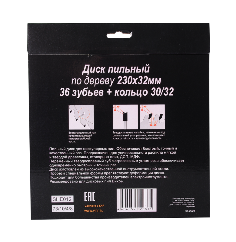 | Модель | Диск пильный по дереву 230х32мм 36 зубьев |