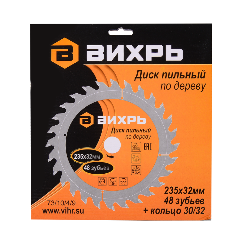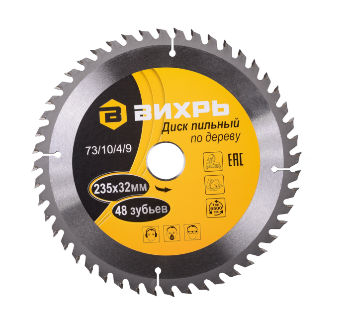 Диск пильный по дереву ВИХРЬ 235х32мм 48 зубьев, 73/10/4/9