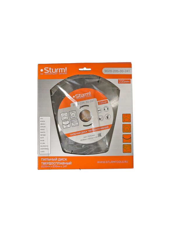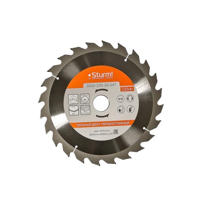 Пильный диск, размер 235x30x24 зуба С ПЕРЕХОД. КОЛЬЦОМ НА 20мм Sturm, 9020-235-30-24T