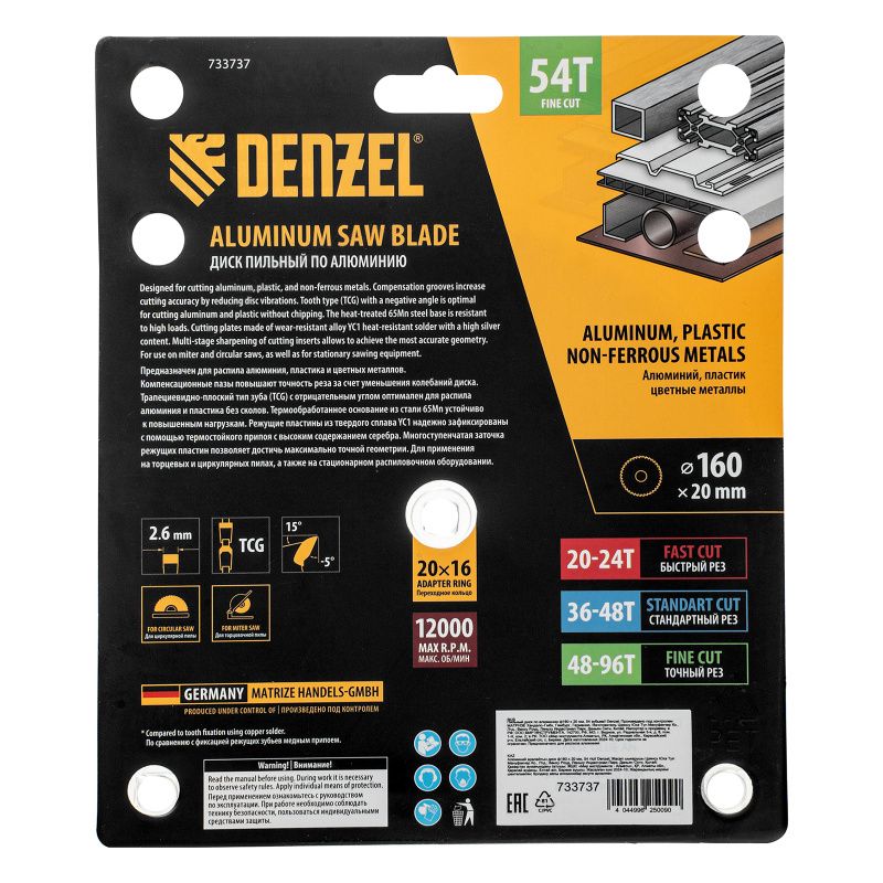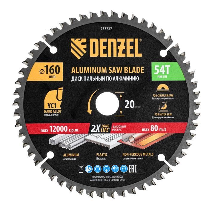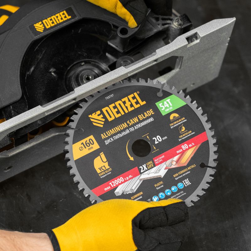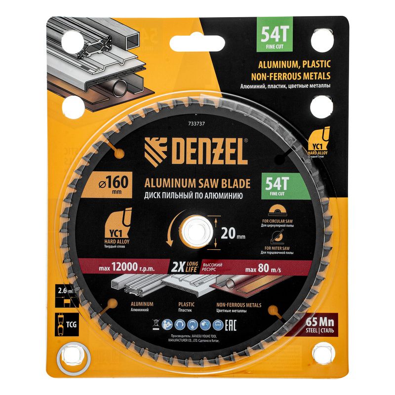 Пильный диск по алюминию ф160 х 20 мм, 54 зубьев Denzel, 733737
