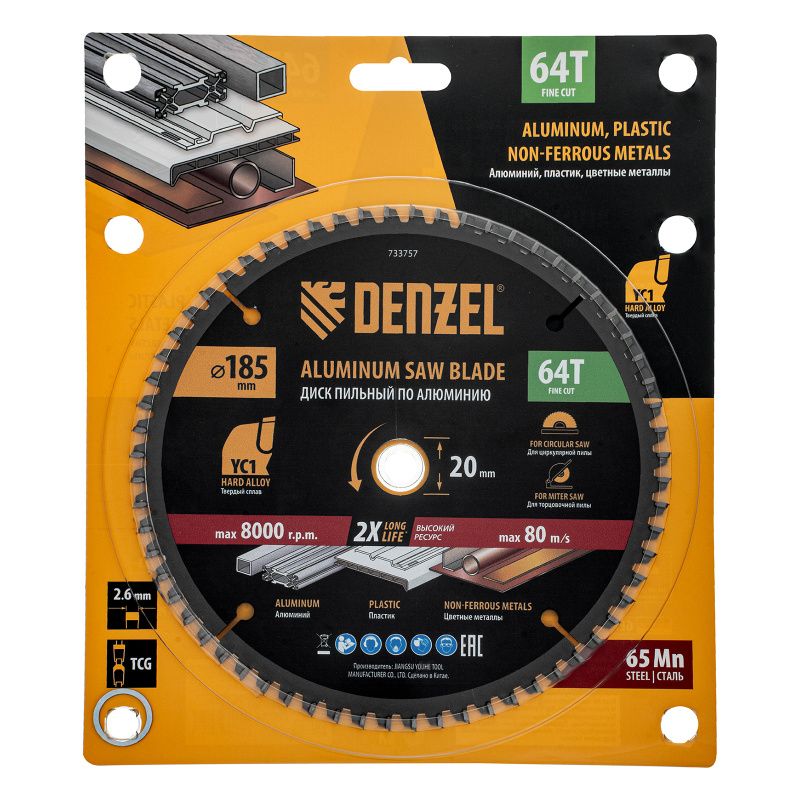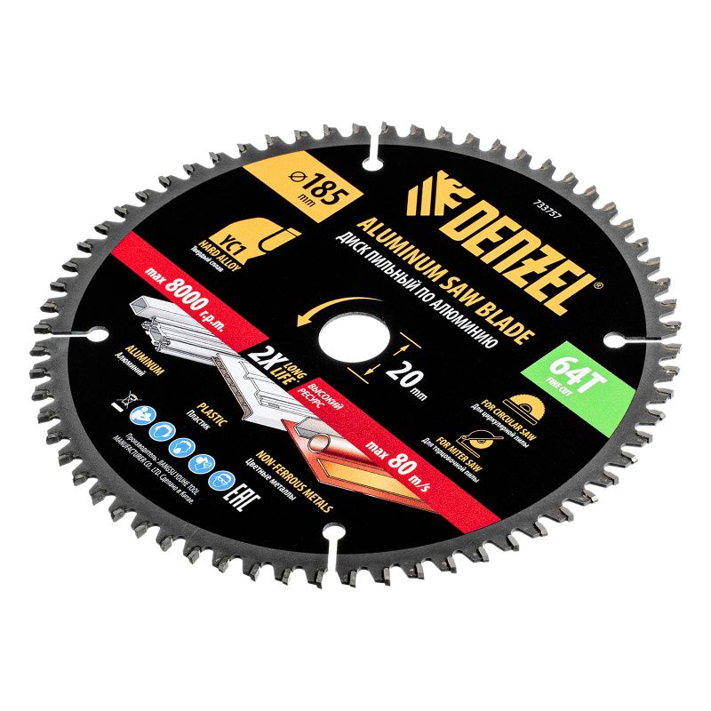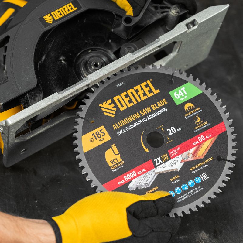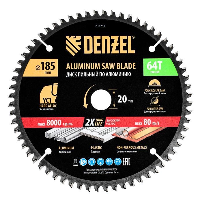 Пильный диск по алюминию ф185 х 20 мм, 64 зубьев Denzel, 733757