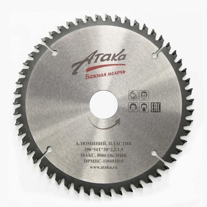 Пильный диск по алюминию и пластику Атака 190*54T*30 ч/рез отриц. профи, 8077780