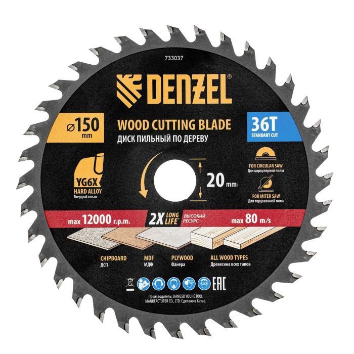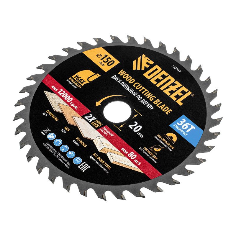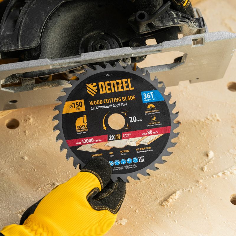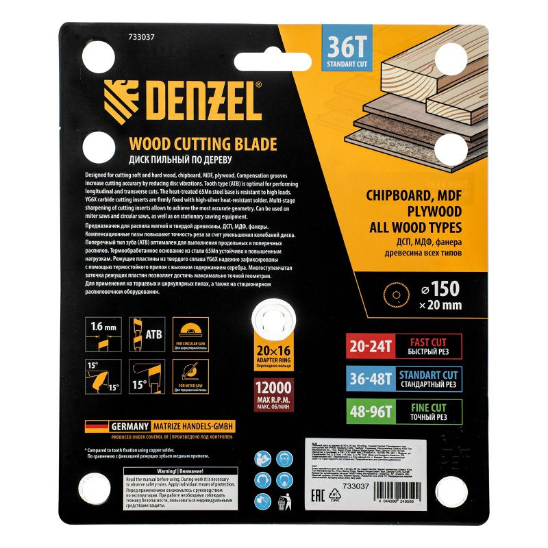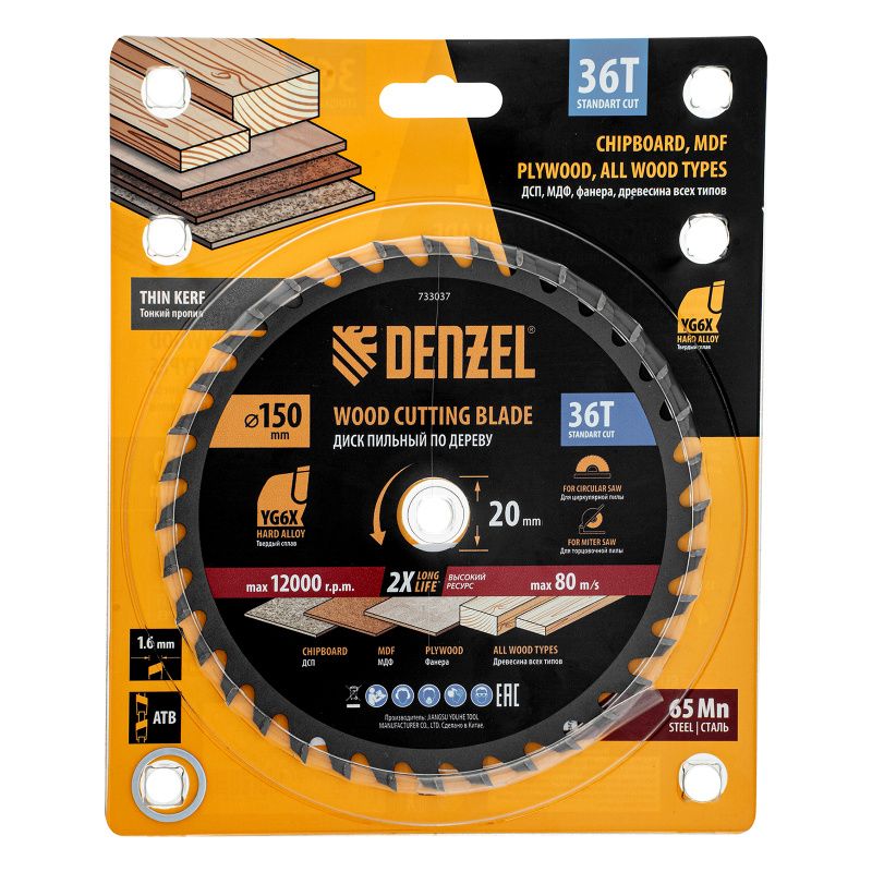 Пильный диск по дереву ф150 х 20 мм, 36 зубов, тонкий Denzel, 733037