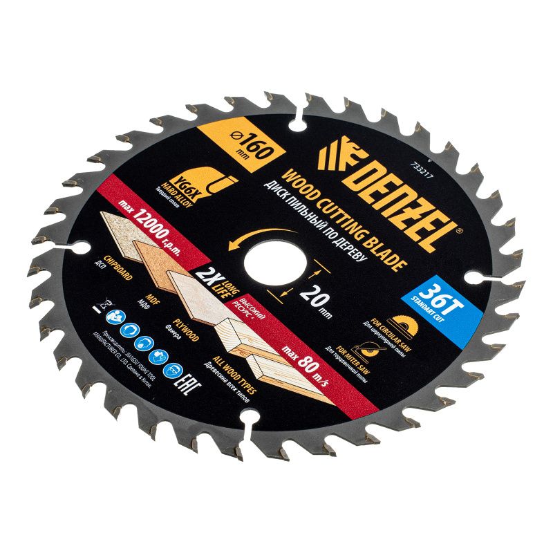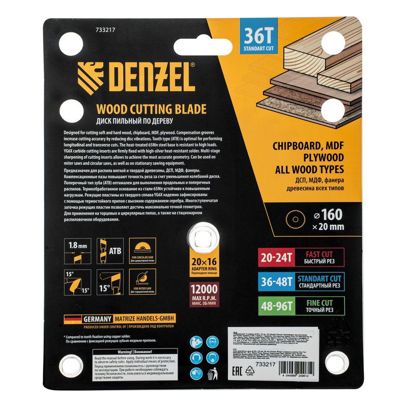 Пильный диск по дереву ф160 х 20 мм, 36 зубьев Denzel, 733217