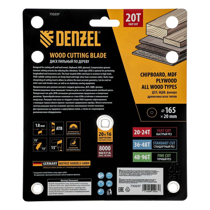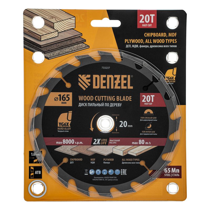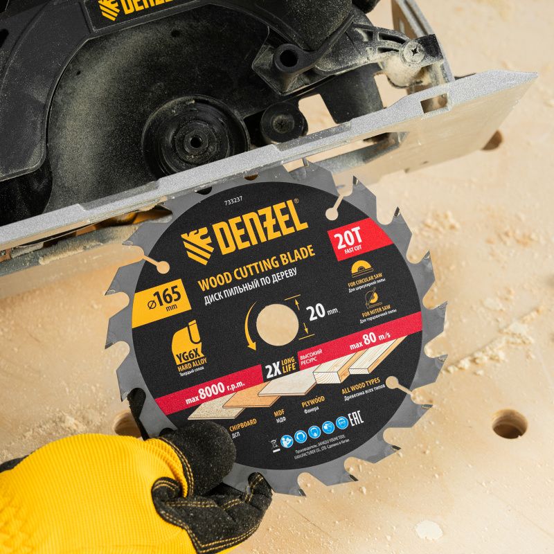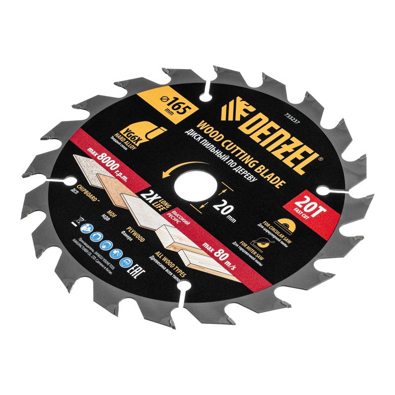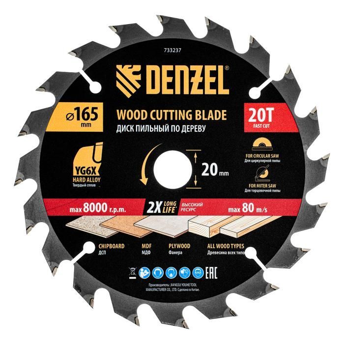 Пильный диск по дереву ф165 х 20 мм, 20 зубьев Denzel, 733237