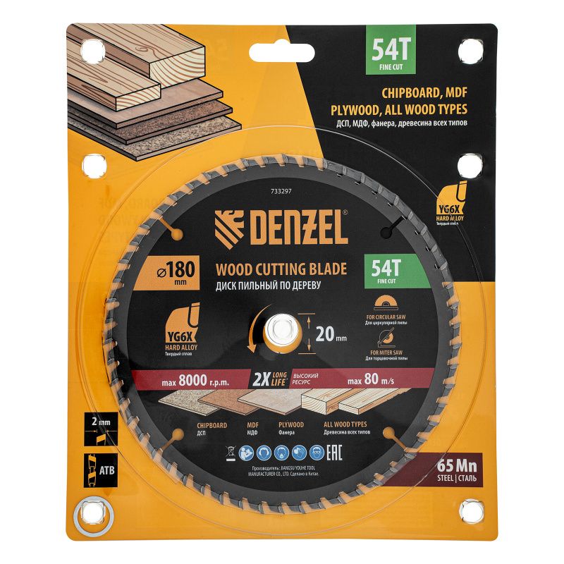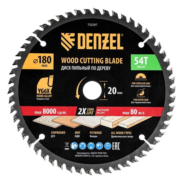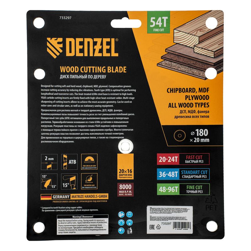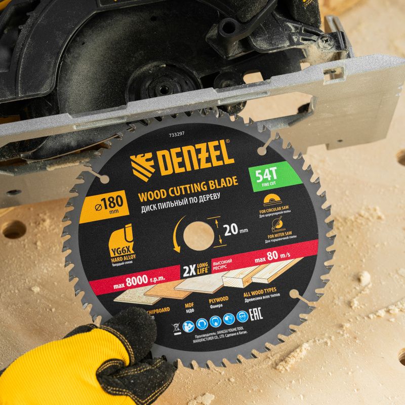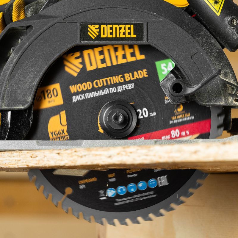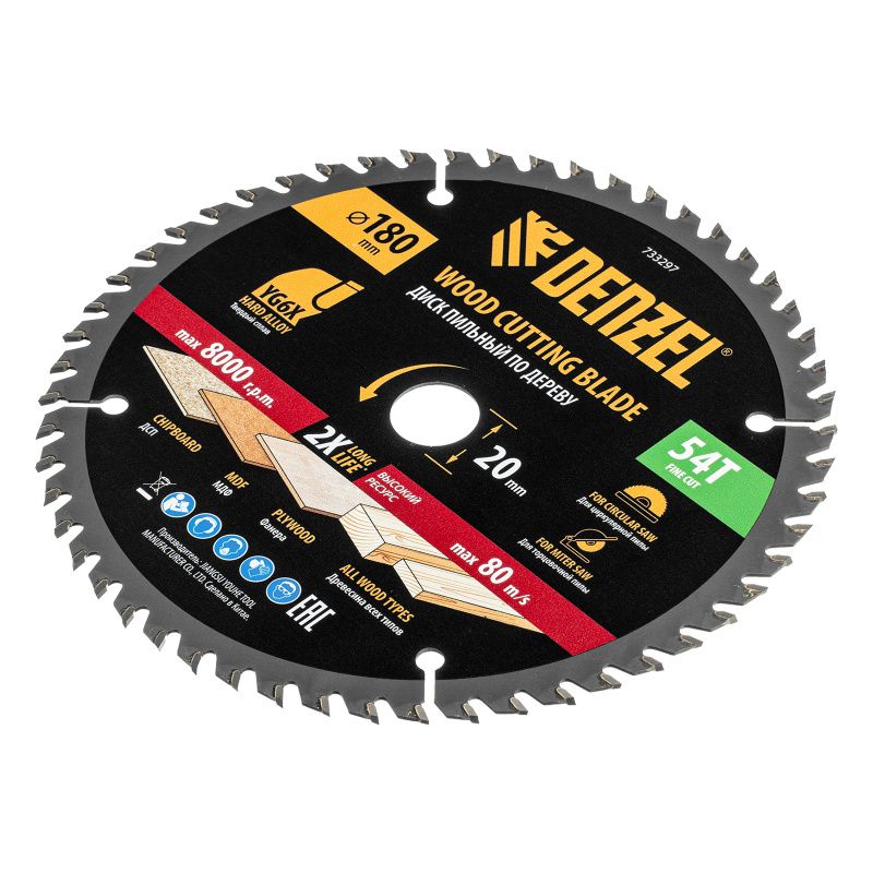 Пильный диск по дереву ф180 х 20 мм, 54зубьев Denzel, 733297
